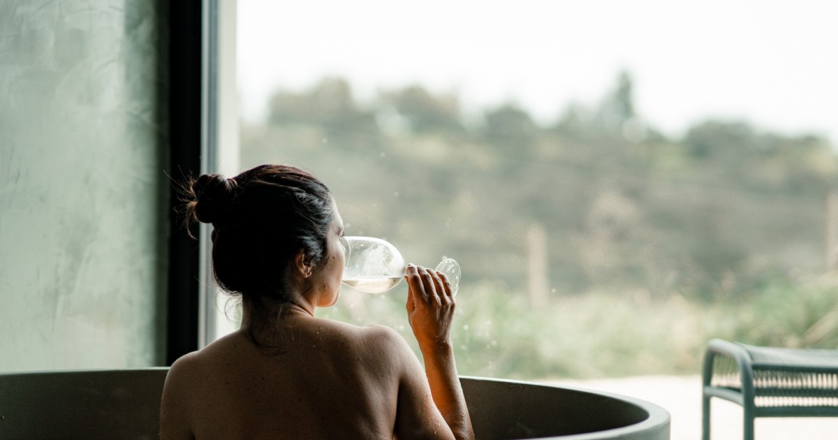 Banho especial de vinoterapia no quarto. Um relaxante e rejuvenescedor momento aguarda por si;