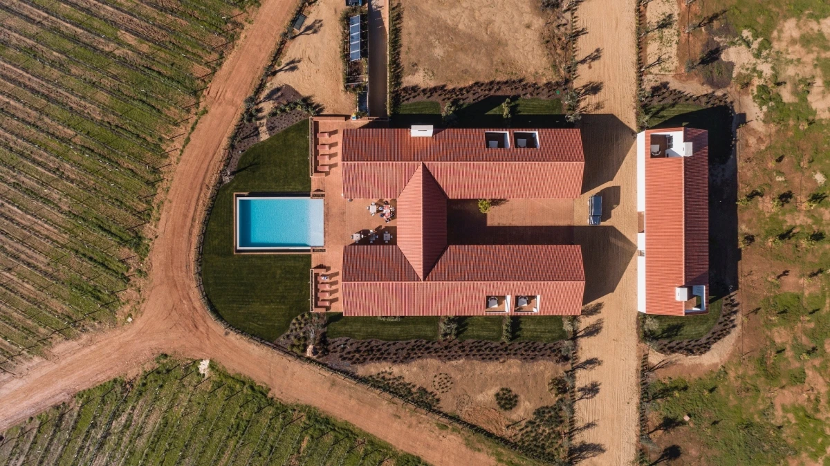 Chegada à Herdade da Malhadinha Nova acompanhada de um welcome drink com um dos vinhos da Herdade;